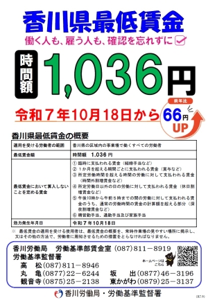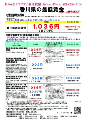 香川県の最低賃金のお知らせ