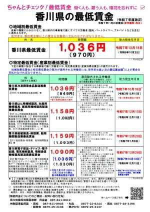 ● 必ずチェック!最低賃金! 【令和6年度改正の「香川県の最低賃金」リーフレットをダウンロード】