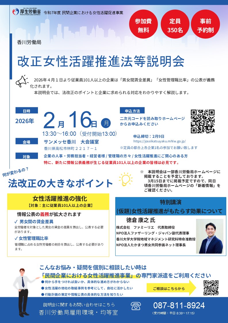 - 令和8年2月16日(月)改正女性活躍推進法等説明会を開催します!