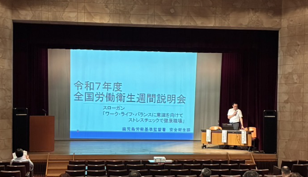鹿児島労働基準監督署では、鹿児島県労働基準協会の協賛等により、9月10日から9月25日まで7会場において、令和7年5月に公布された労働安全衛生法等の改正内容や、熱中症、メンタルヘルス対策等に加え、過重労働による健康障害防止対策、時間外協定の適切な締結、賃金引上げに助成金等に関する説明を行いました。