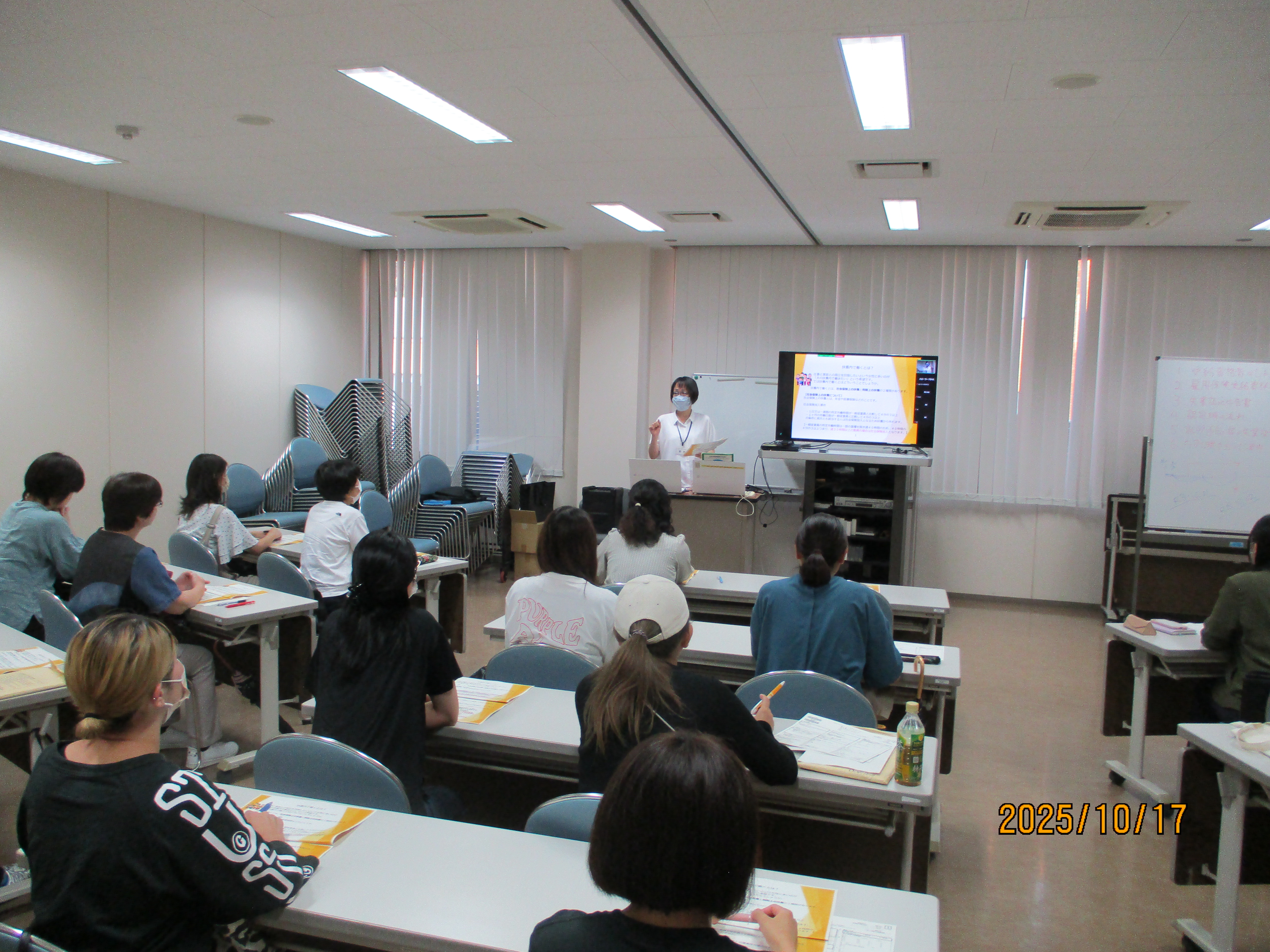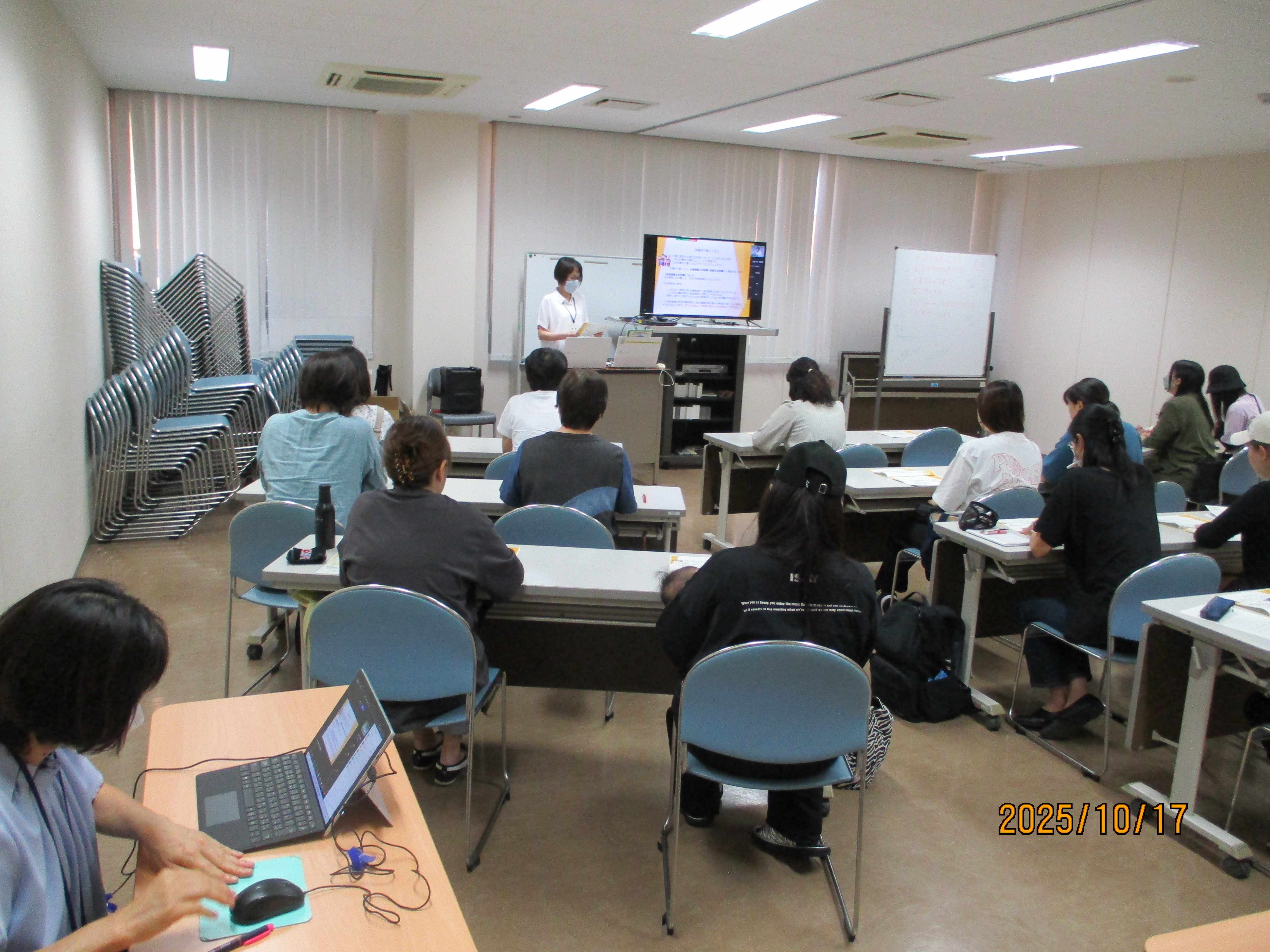 小さな子供がいて会場での受講が困難な方のため、会場だけなくオンライン(Zoom使用)でも受講可能なハイブリット形式で実施いたしました。会場での参加者19名、オンライン参加者6名と盛況でした。