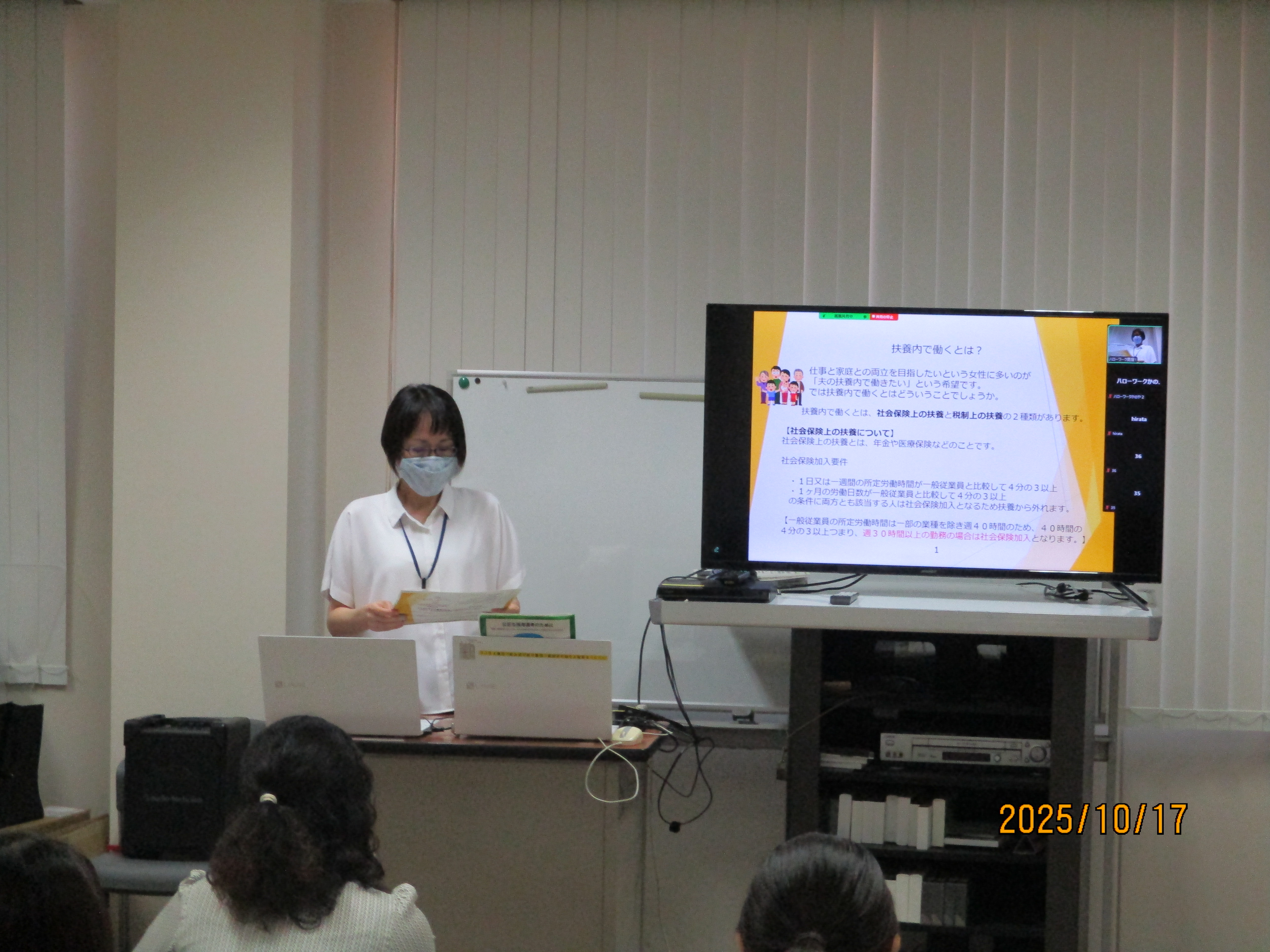 ハローワークかのや(鹿屋公共職業安定所)のマザーズコーナーでは、令和7年10月17日に「扶養内で働くとは?」をテーマに「子育て就職支援セミナー」を開催いたしました。