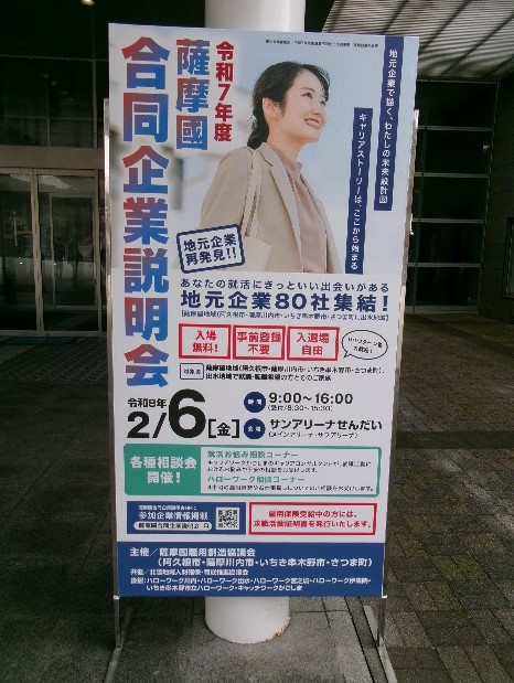 令和8年2月6日(金)に「薩摩國合同企業説明会」(主催:薩摩國雇用創造協議会)が薩摩川内市のサンアリーナせんだいで開催されました。