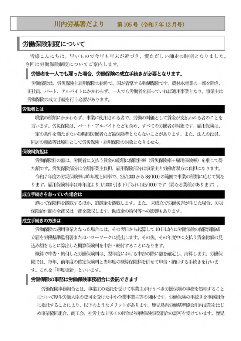 川内労基署だより 第105号(令和7年12月号)(川内労働基準監督署)[PDF形式:772KB]