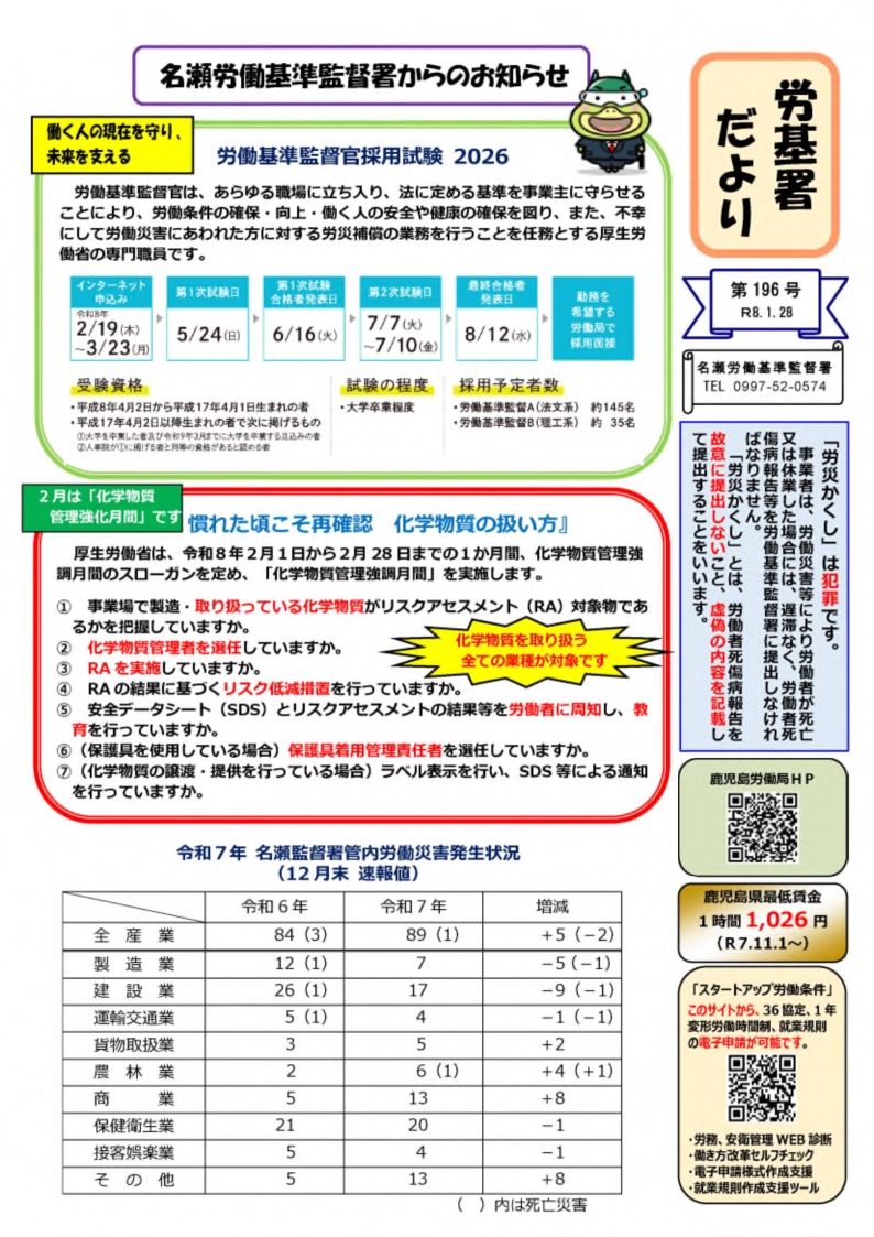 労基署だより第196号 令和8年1月28日発行(名瀬労働基準監督署)[PDF形式:618KB]