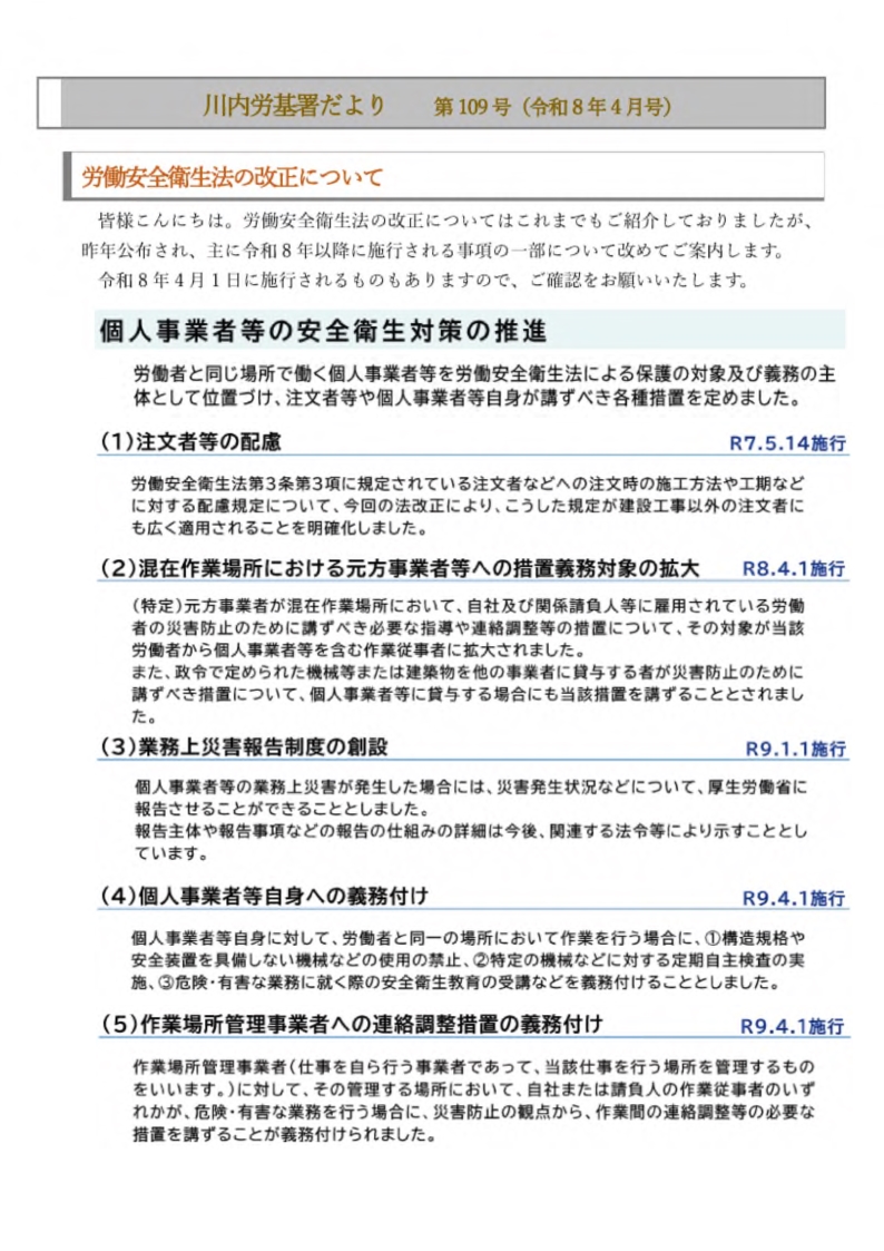 川内労基署だより 第109号(令和8年4月号)(川内労働基準監督署)[PDF形式:626KB]
