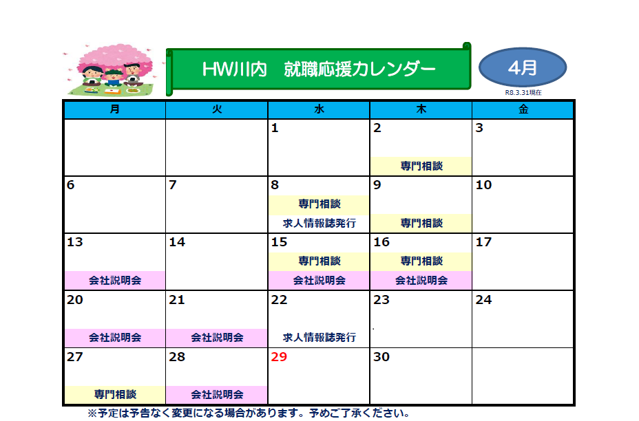 各説明会の詳細はイベント情報[ハローワークインターネットサービス]をご覧ください。 - 応募の前に仕事内容や職場環境を直接聞くことができます!(予約制)