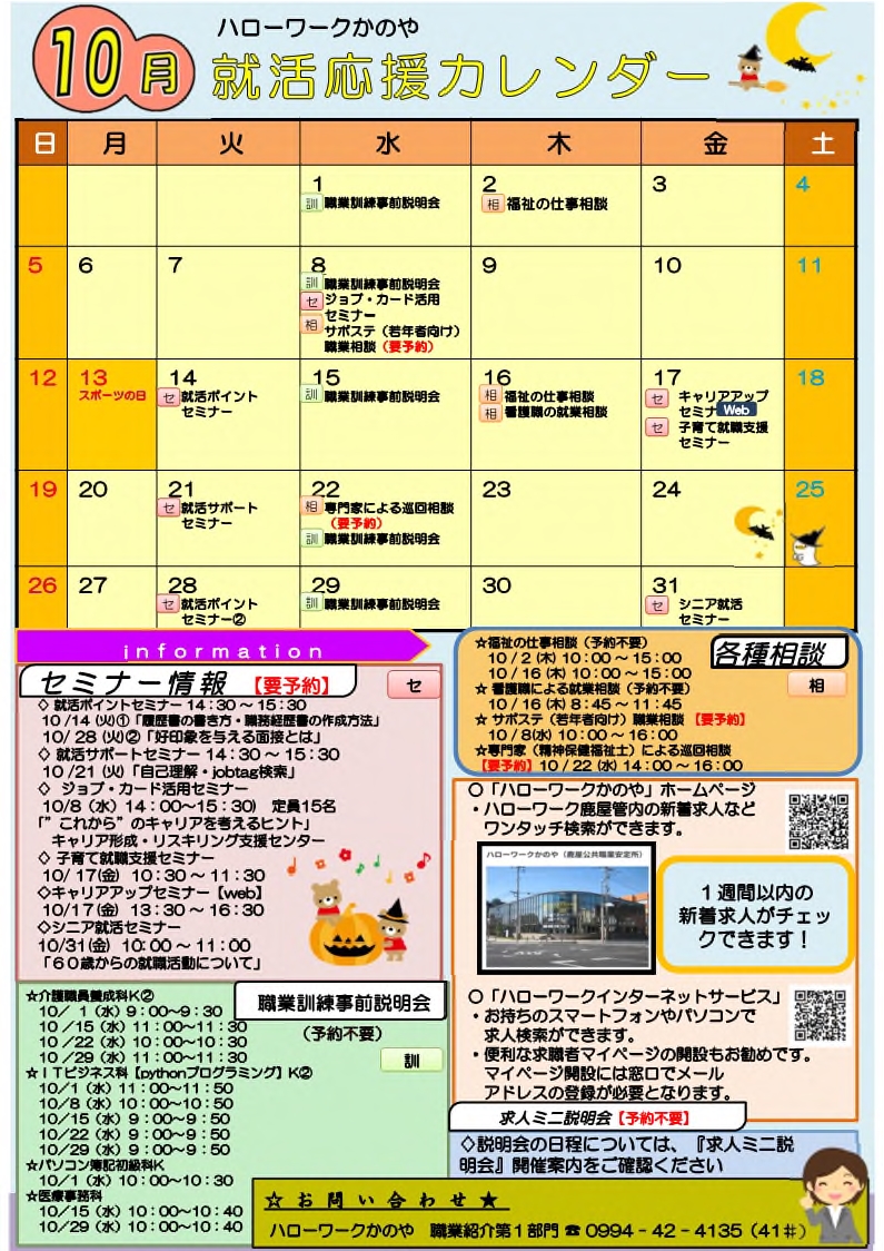 - 職業訓練コースなどの詳細は、鹿児島労働局特設ページをご覧ください!