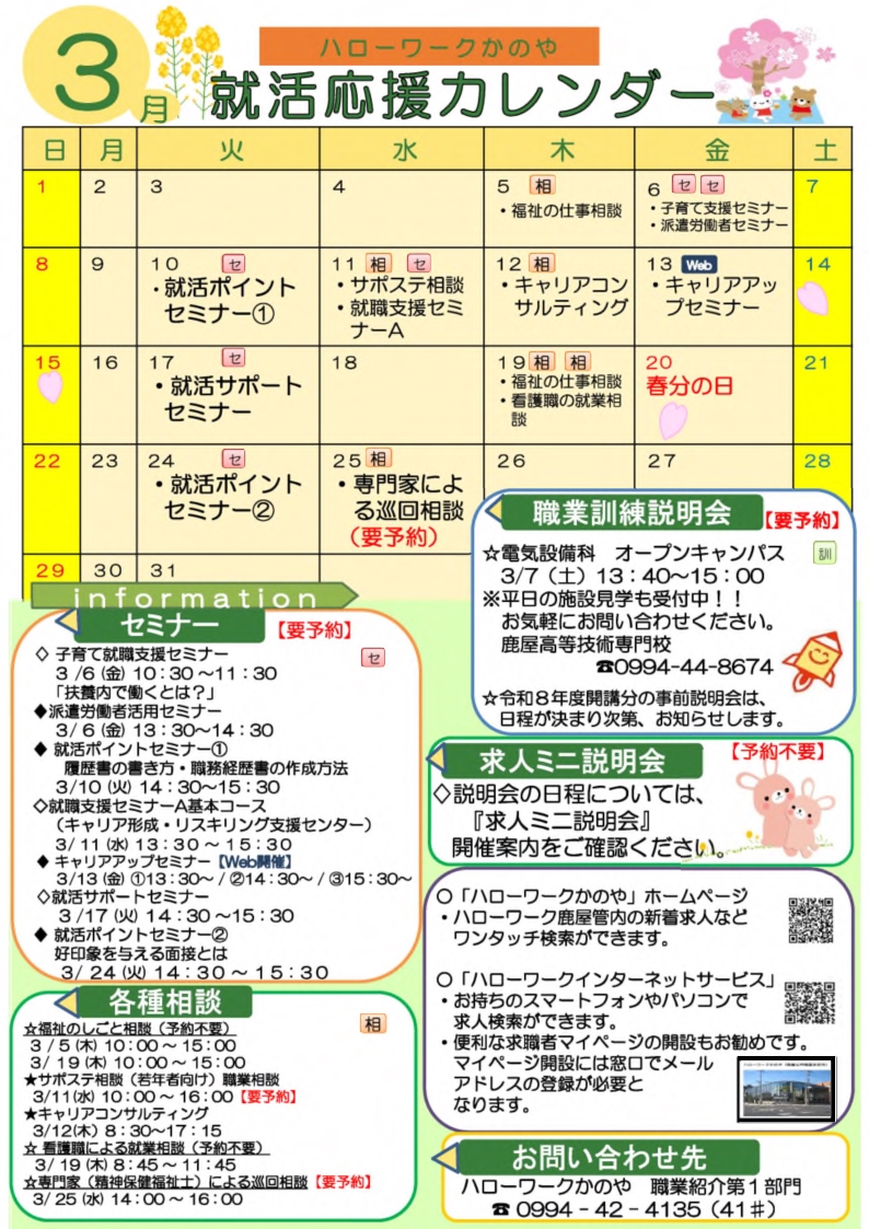 - キャリアアップセミナー(ハロワ会場/Web)[キャッチワークかごしまホームページ]