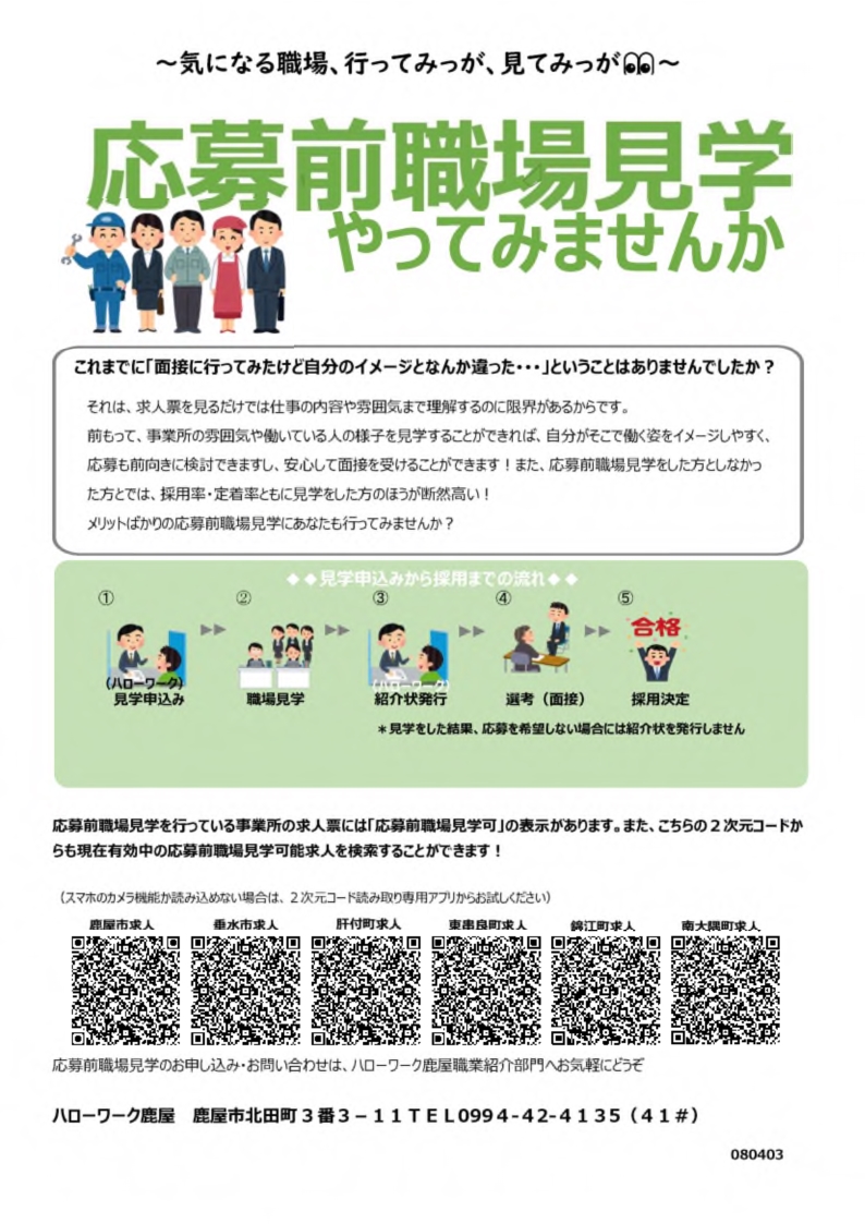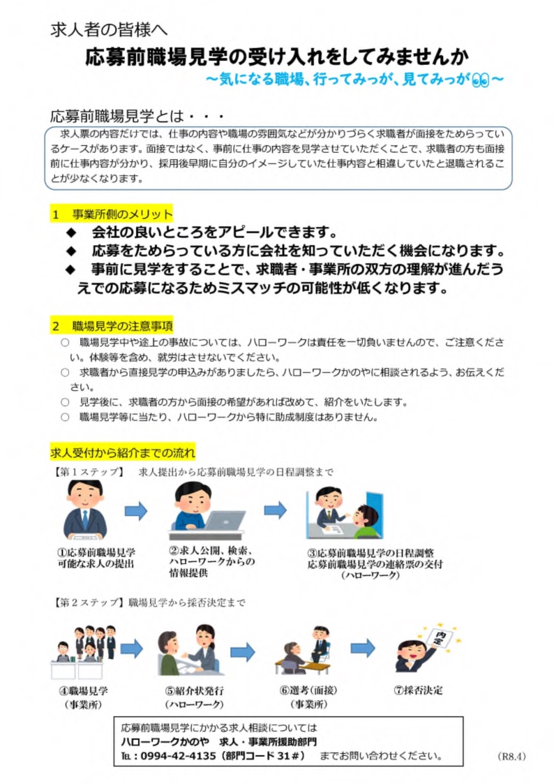 ぜひ、応募前職場見学の受け入れにご協力ください。