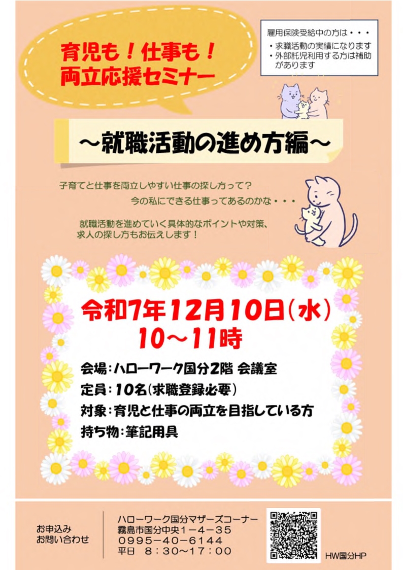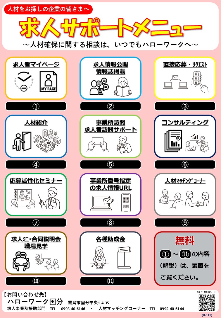 - 人材確保でお困りのことはありませんか?人材確保に関するご相談は、いつでもハローワーク国分にお寄せください!