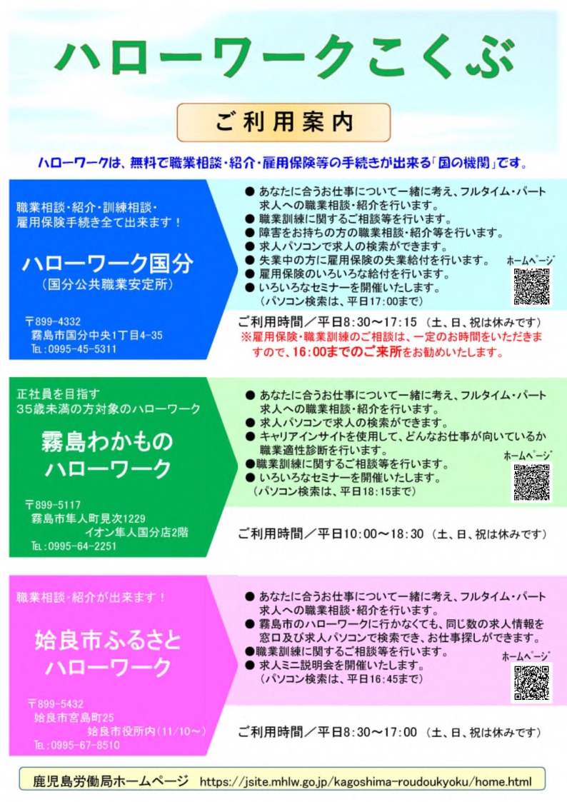 - 職業訓練コースなどの詳細は、鹿児島労働局特設ページをご覧ください!