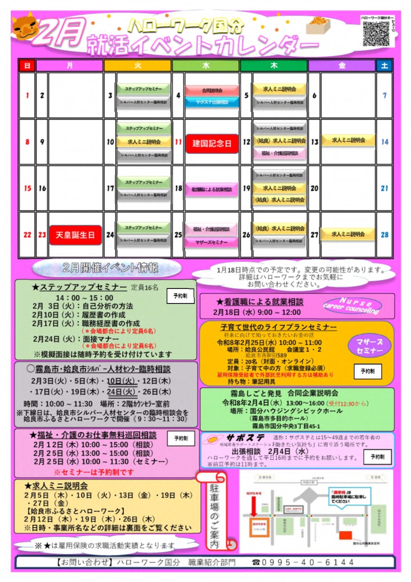 - ハローワーク国分管内(霧島市、姶良市)の求人をワンタッチで簡単に検索することができます。
