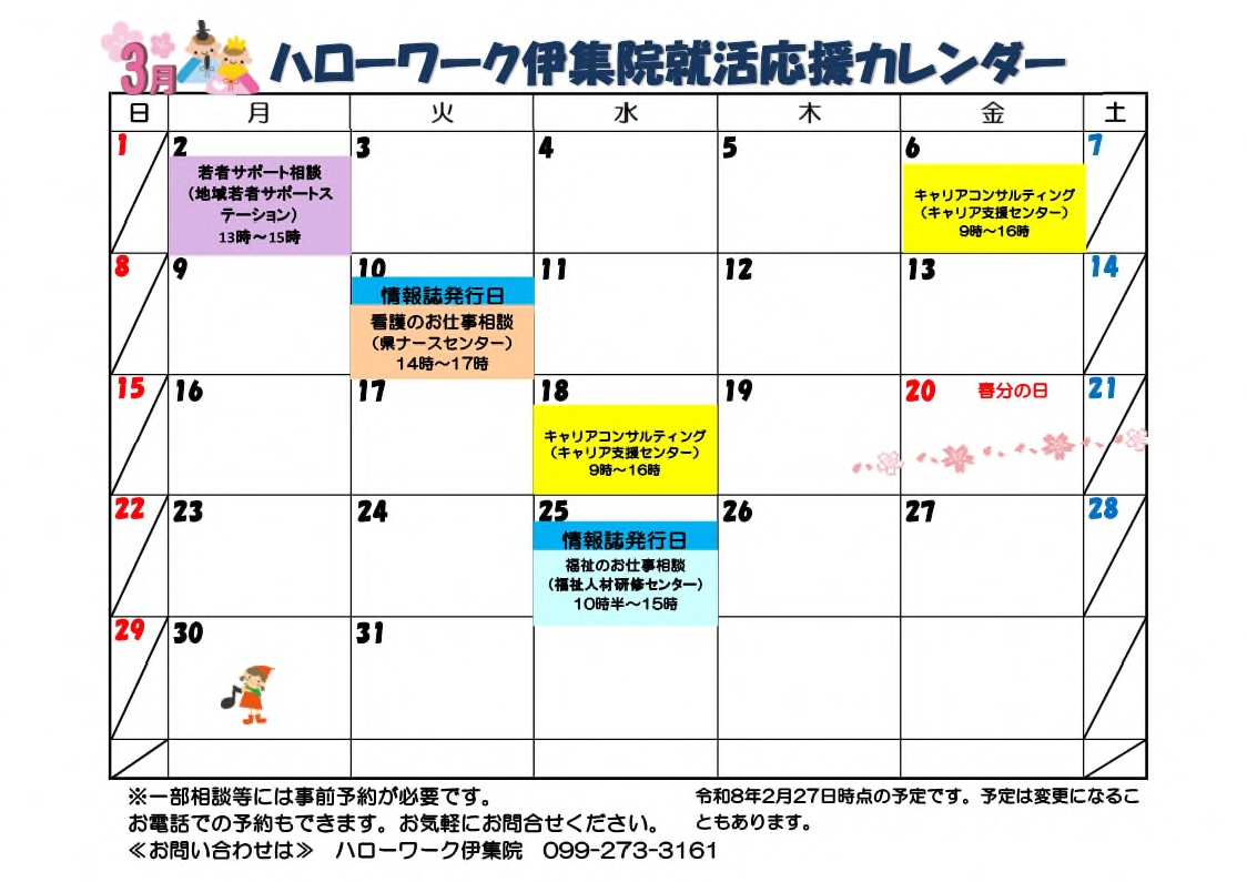 3月のイベントカレンダーを更新しました。NEW