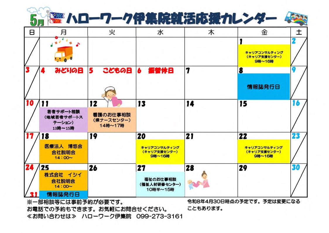 - ハローワーク伊集院発行の求人情報誌(日置市、いちき串木野市)を見ることができます。