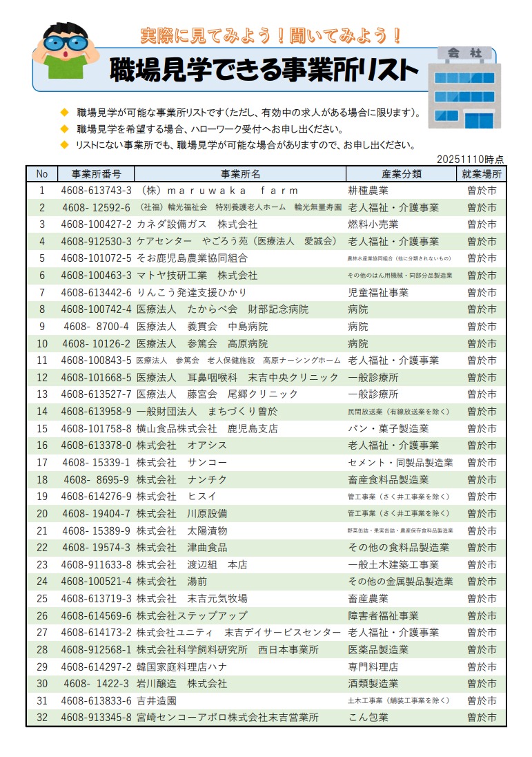 - 職場見学できる事業所リスト[PDF形式:977KB]