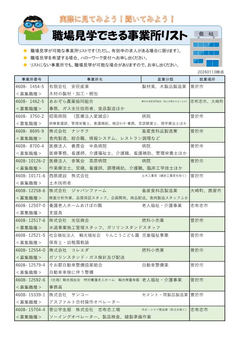 - 職場見学できる事業所リスト[PDF形式:1,104KB]