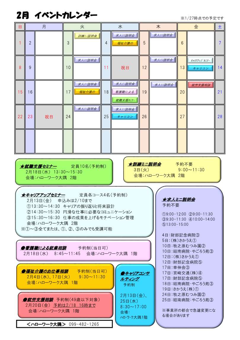 2月のイベントカレンダーを更新しました。NEW
