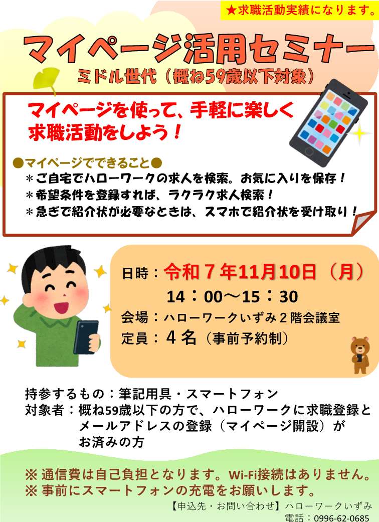 11月10日(月)に求職者向け「マイページ活用セミナー」を開催します。NEW