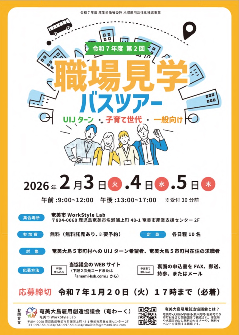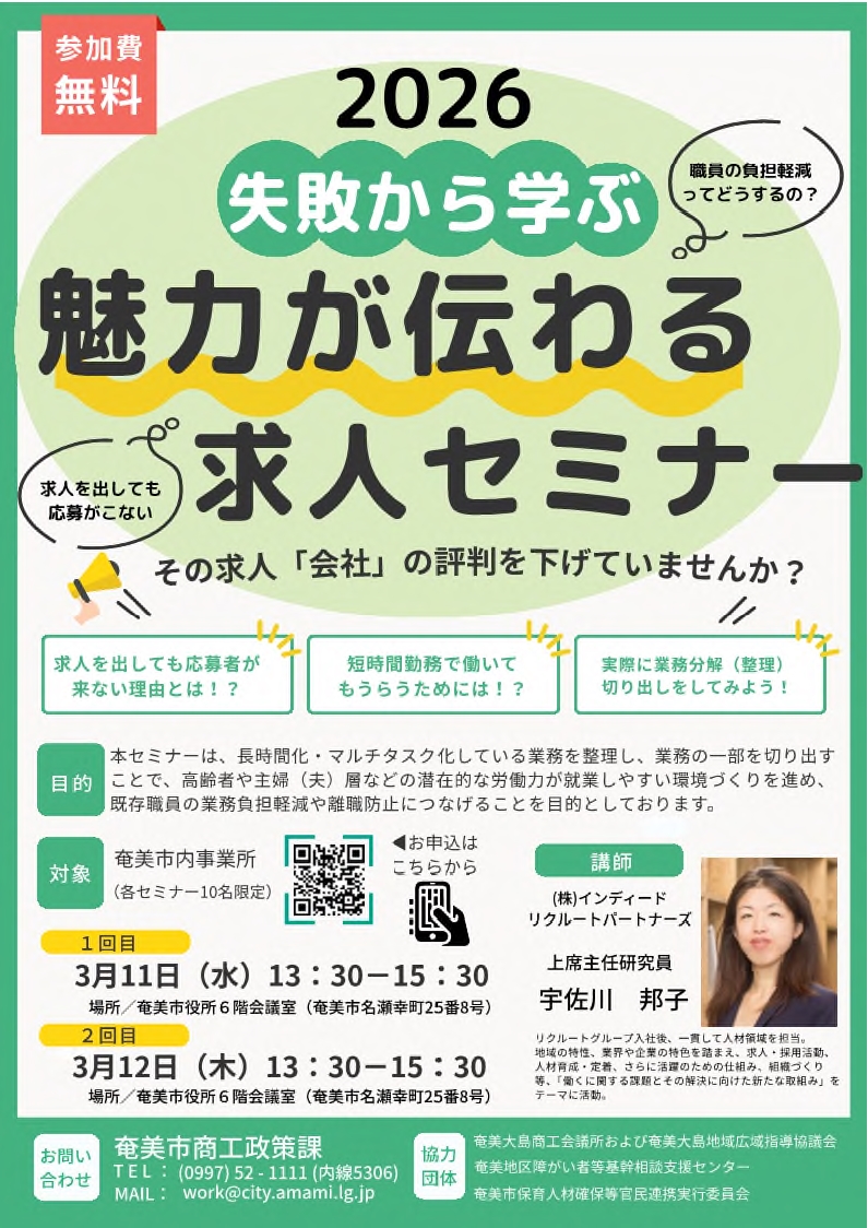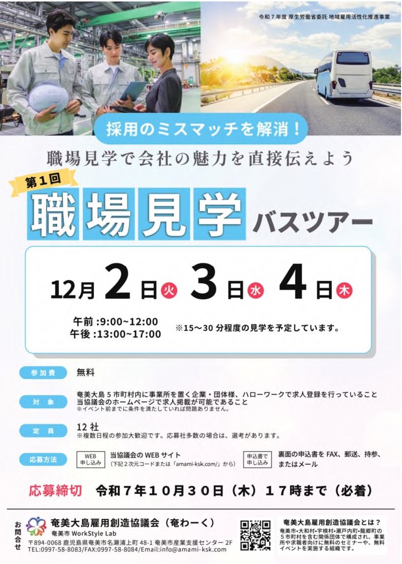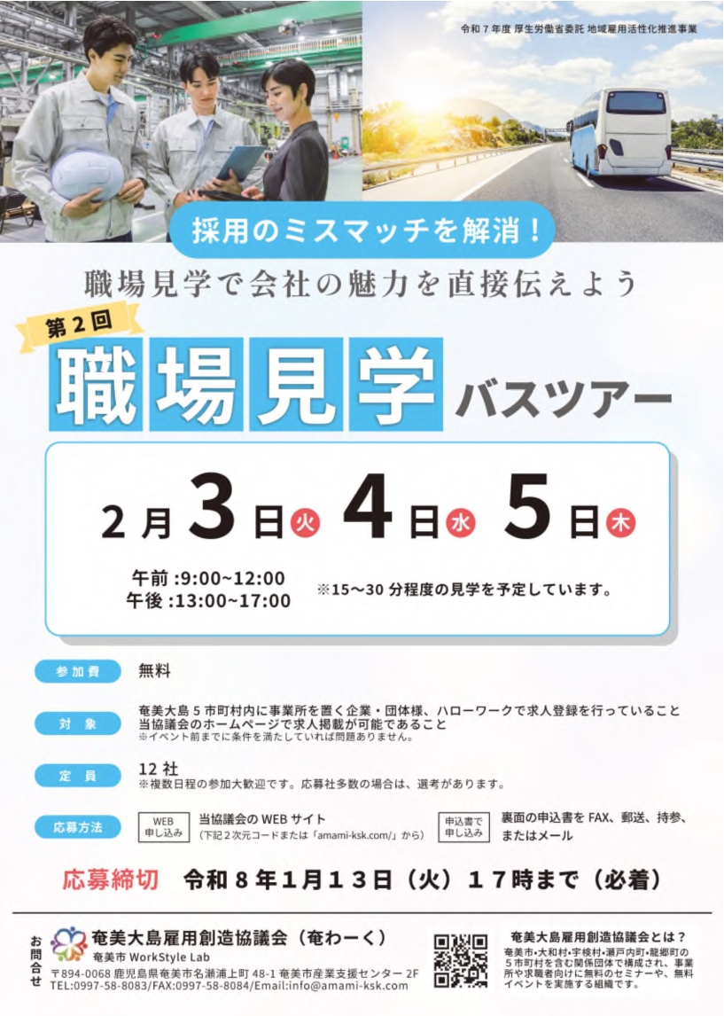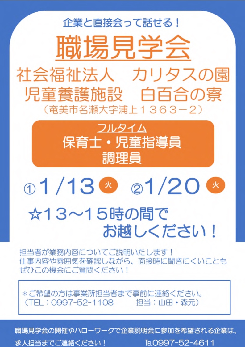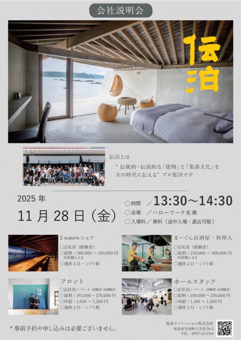 - ハローワーク名瀬で各回1社ずつ開催できる説明会です。
