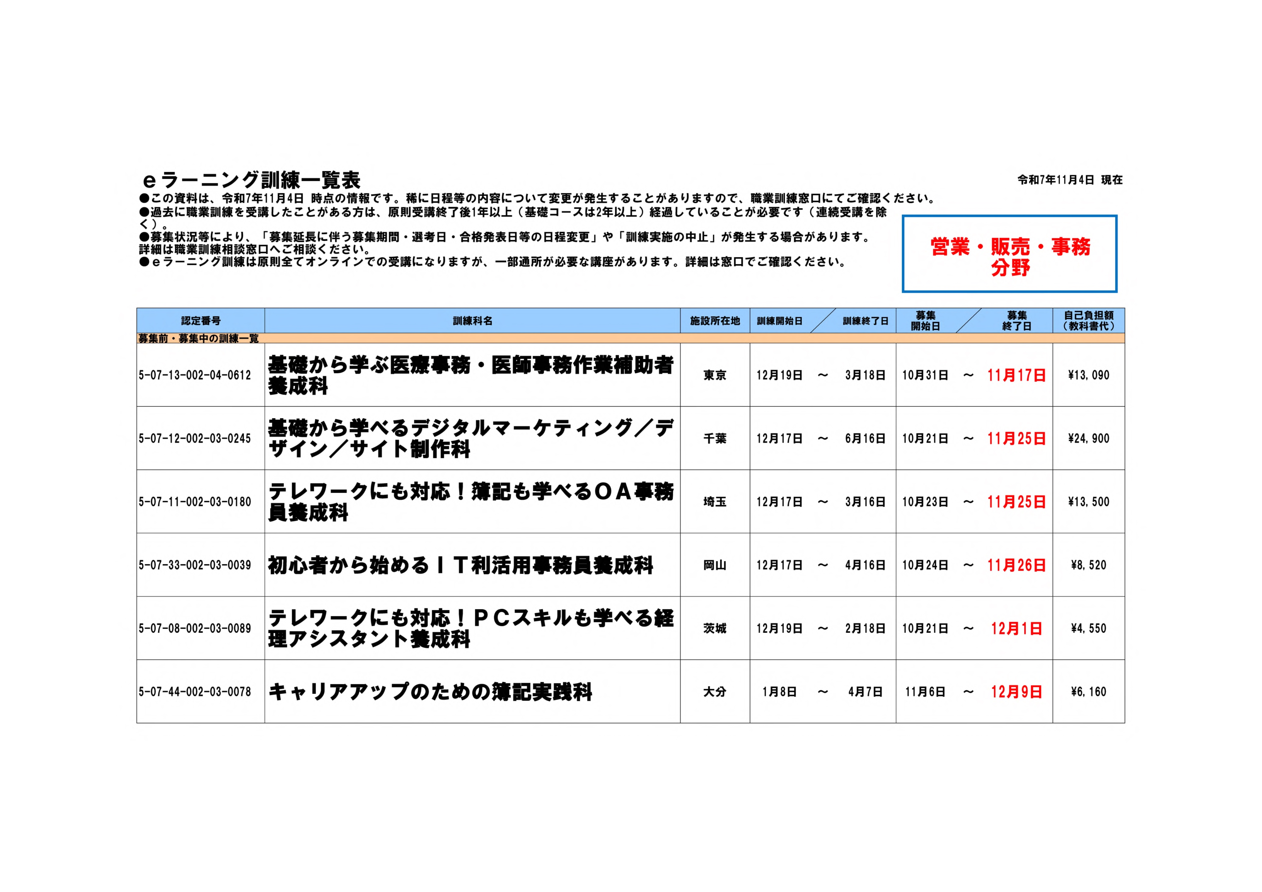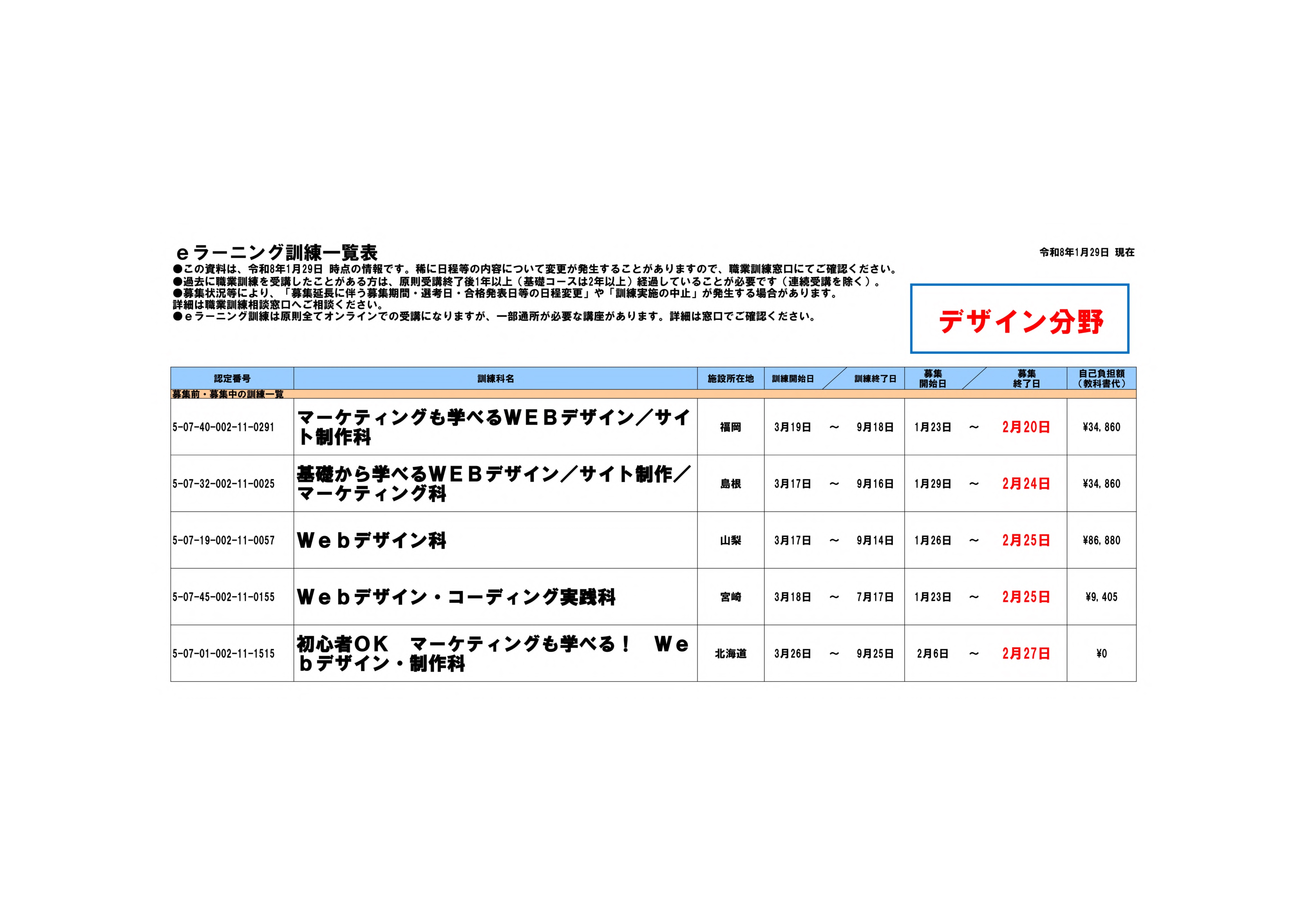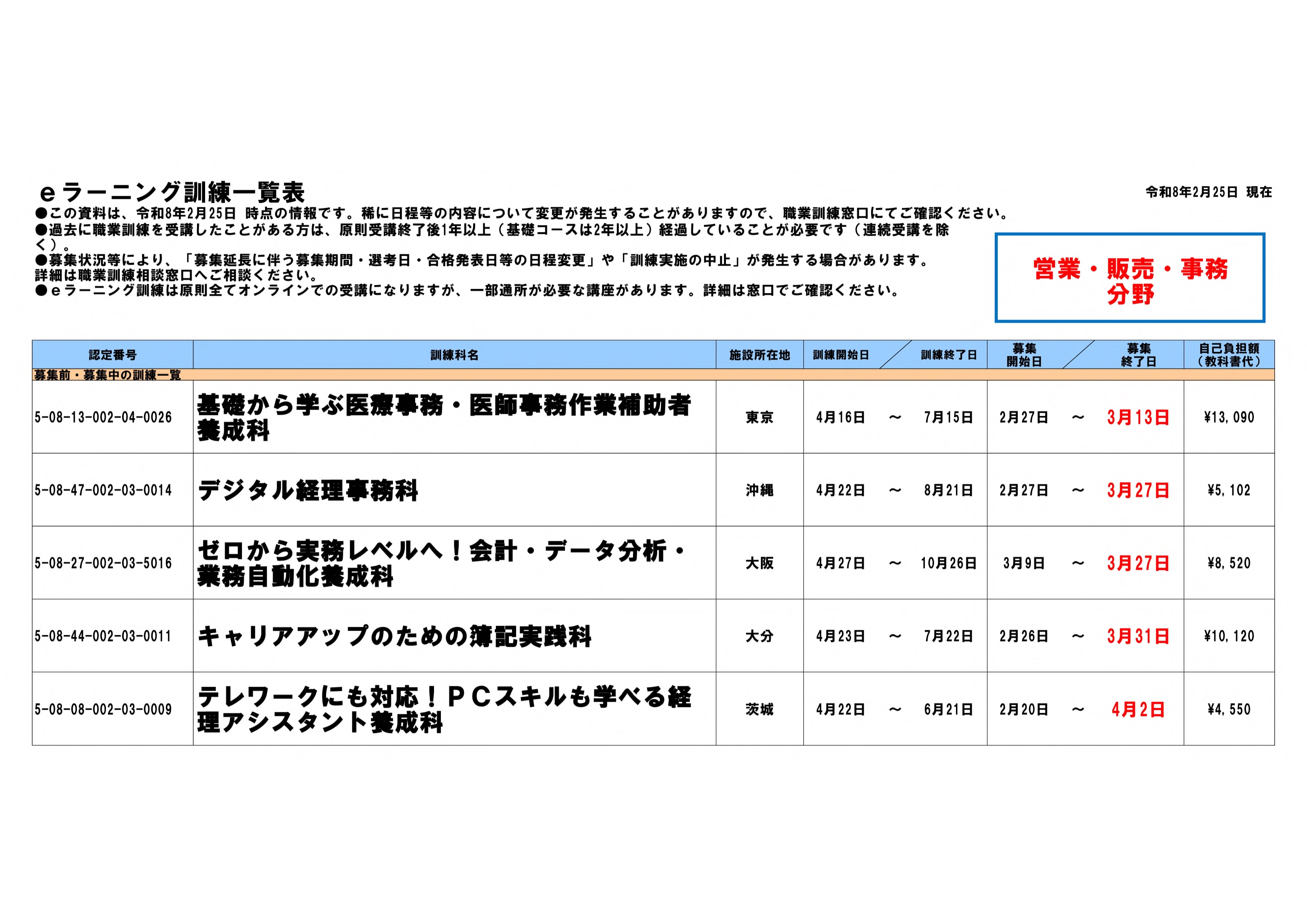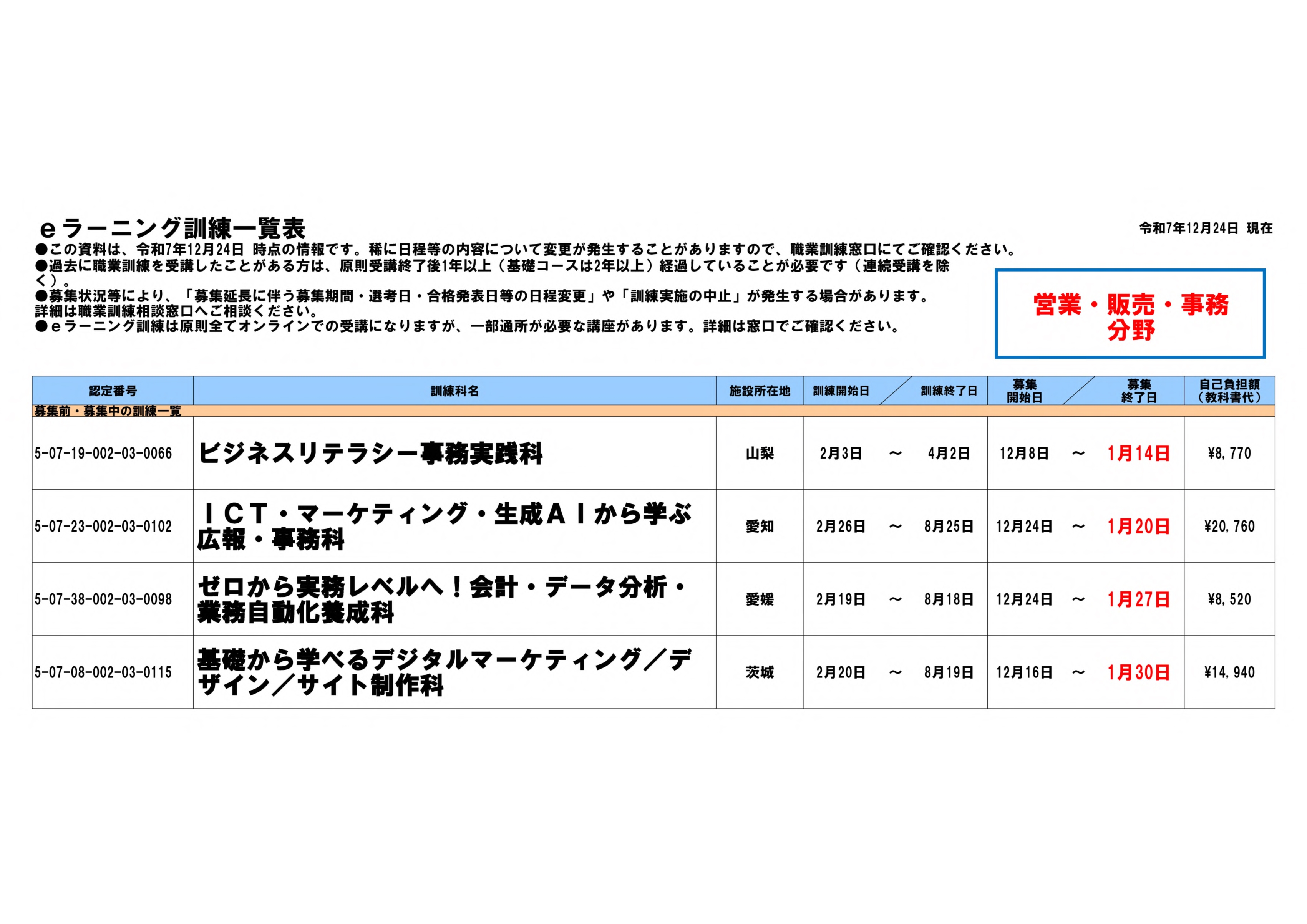 - 現在募集中の「e-ラーニングコース一覧表」です!気になる方はハローワーク名瀬へご相談ください!