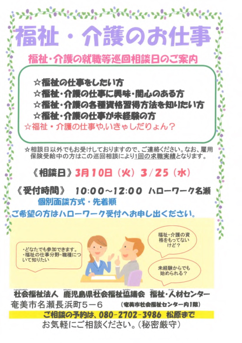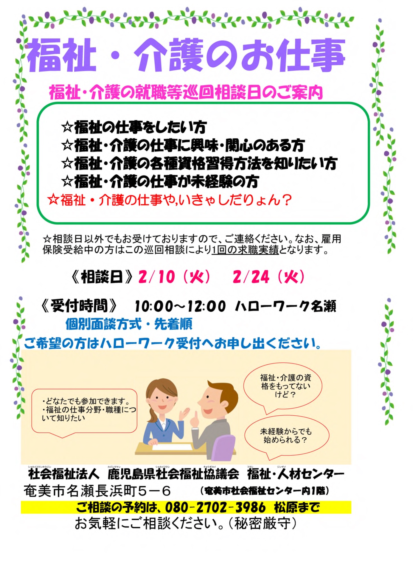 - これから仕事を探す皆さまへ 医療・介護・保育の仕事をハローワーク名瀬で検討してみませんか?[PDF形式:948KB]