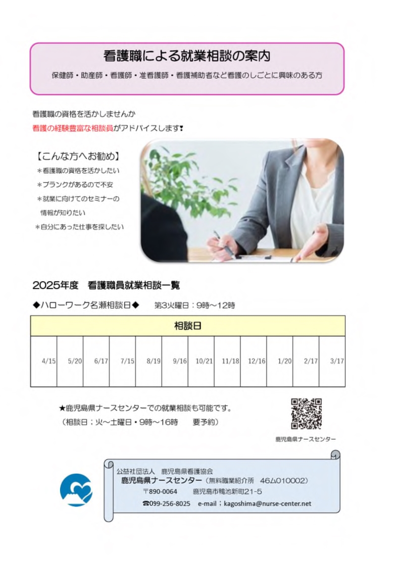 - 看護職(保健師・助産師・看護師・准看護師)の資格を活かしてみませんか!