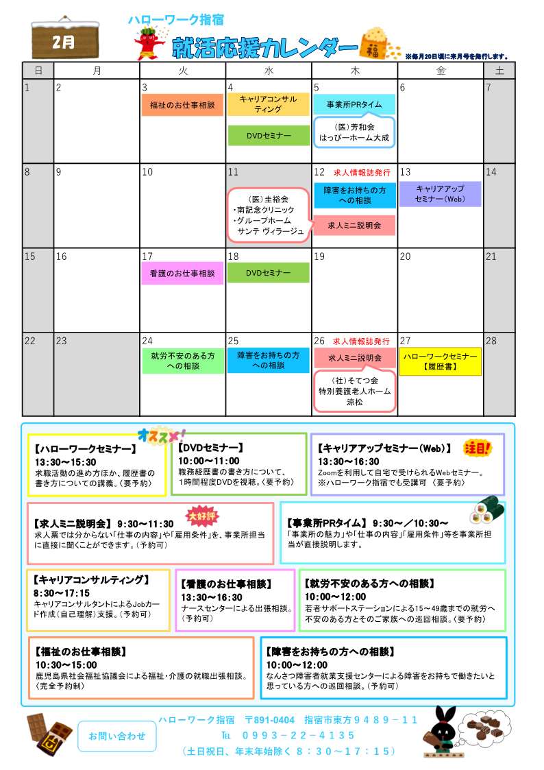 2月のイベントカレンダーを更新しました。NEW