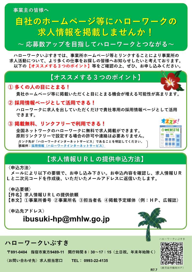 - ハローワーク指宿管内及び近隣地域(指宿市、南九州市)の求人をワンクリックで簡単に検索することができます。