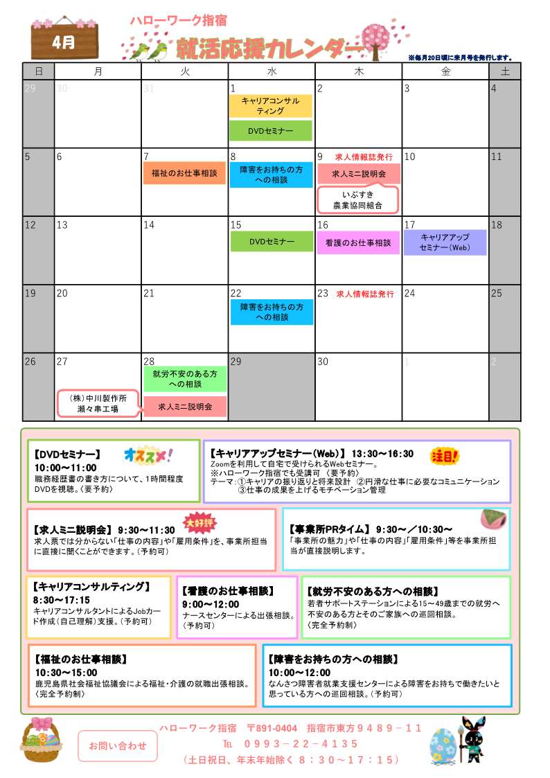 4月のイベントカレンダーを更新しました。NEW