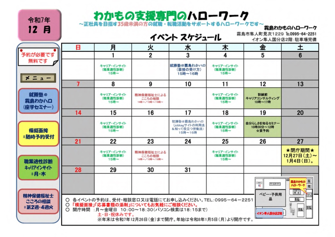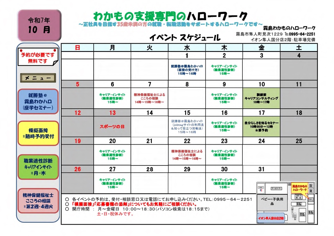 - 霧島わかものハローワーク内で開催できる、各回1社づつの説明会です。