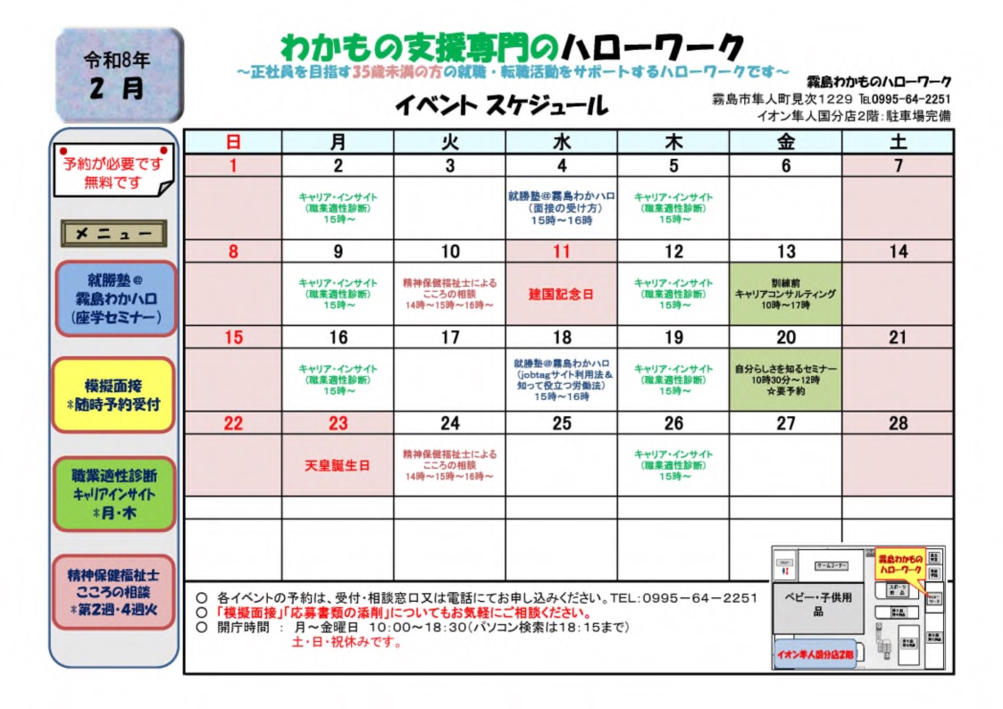 霧島わかものハローワーク TEL : 0995-64-2251