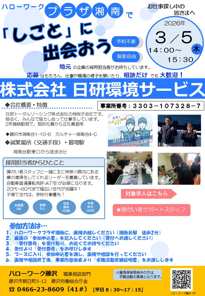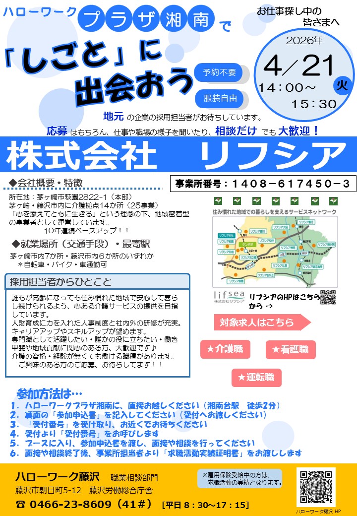 ハローワークプラザ湘南で「しごと」に出会おうしごとに出会おう説明
