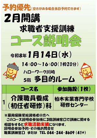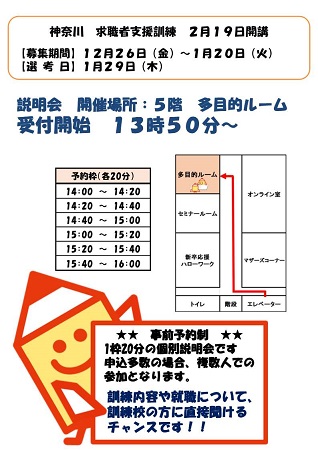 ▶1月~2月 予約制 職業訓練(体験付)説明会