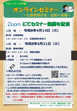 神奈川労働局では、毎月オンラインセミナーを開催しております! 詳しくは下記リーフレットをご確認ください。