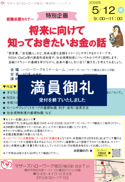 ●5月開催「マザーズハローワーク横浜 オンラインセミナー」のお知らせ●