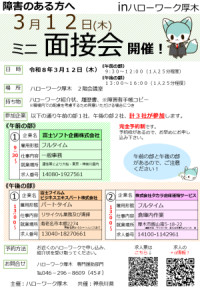 このページでは、障害者ミニ面接会の対象求人について、求人票では伝えきれない情報を掲載しております。ミニ面接会に参加ご検討の方は、ぜひご覧ください!