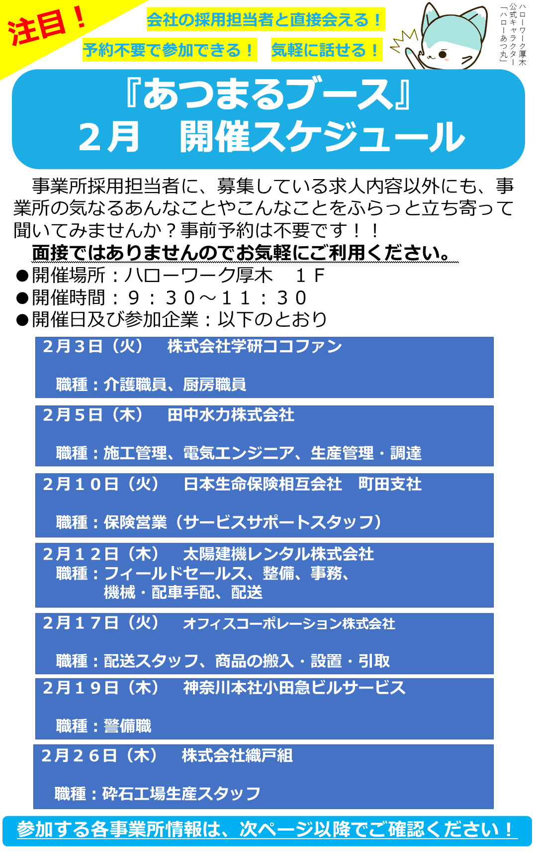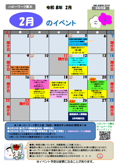 ハローワーク厚木利用ガイドPDFを開く遷移ボタンかんたん求人検索ページへ遷移するボタン職業訓練ページへの遷移ボタン面接会&セミナーページへの遷移ボタン企業説明会ページへの遷移ボタン求職者マイページの案内ページへの遷移ボタン新卒者&既卒者向けページへの遷移ボタンマザーズコーナーページへの遷移ボタン事業所訪問レポートページへの遷移ボタン雇用保険ページへの遷移ボタン障害をお持ちの方専用ページへの遷移ボタン賃金・統計情報ページへの遷移ボタンオンライン職業相談ページへの遷移ボタン履歴書案内ページへのリンクボタンその他のお知らせページへの遷移ボタン