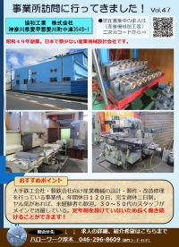 ハローワーク厚木では、求職者のみなさまにより求人の魅力をお伝するため「事業所訪問レポート」を作成し掲載しております。