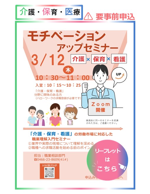 R8/ 2/19更新 3/12(木)モチベーションアップセミナー(介護・保育・看護)