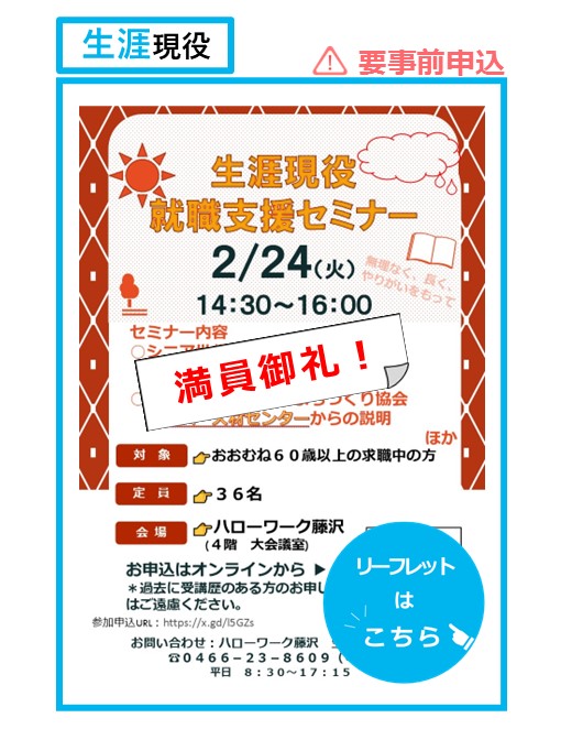 R8/ 2/ 3更新   2/24(火)生涯現役就職支援セミナー