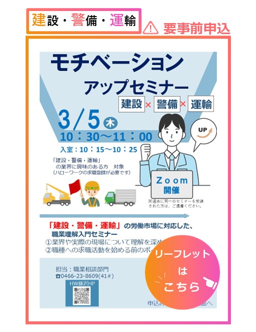 R8/ 2/12更新  3/5 (木)モチベーションアップセミナー(建設・警備・運輸)