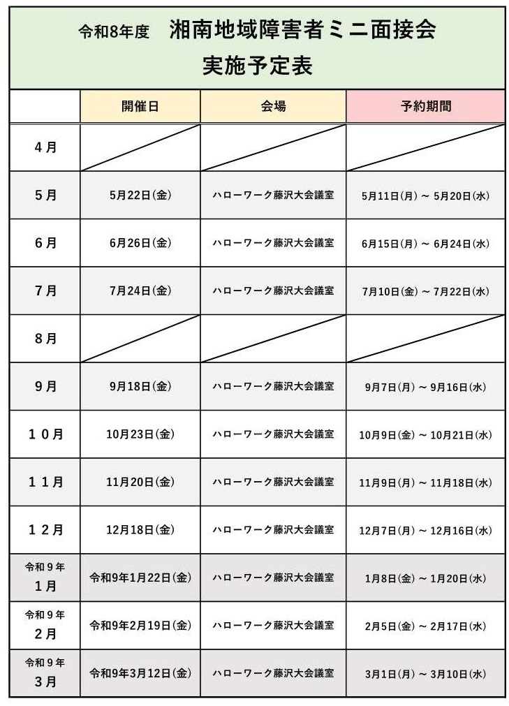 障害者面接会日程表