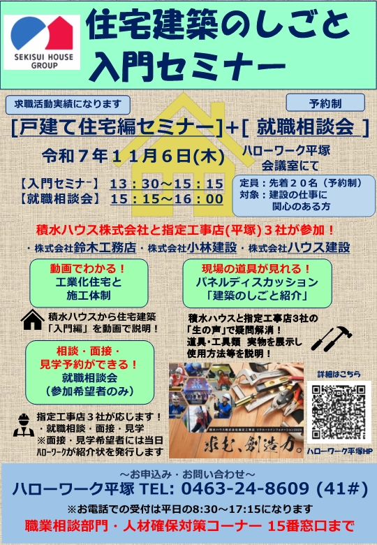 建設の仕事と資格を知るセミナー | 建設業の仕事内容や働き方、資格の種類 や取得方法、職業訓練の説明 |
