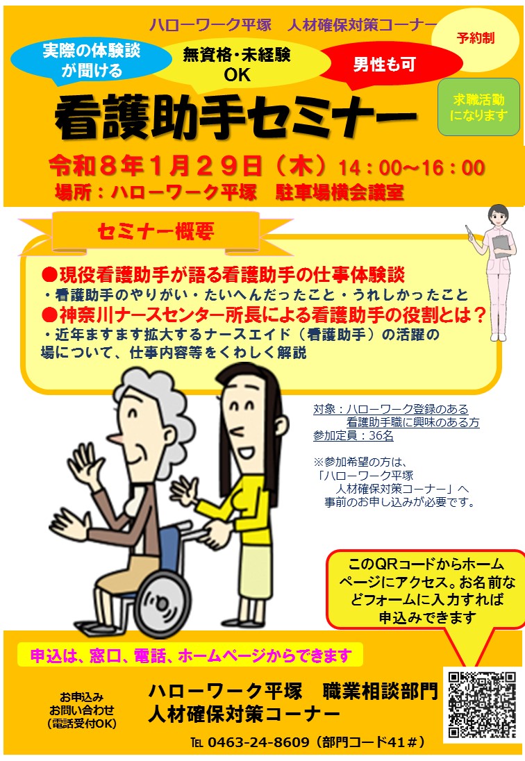 申込:予約制です。定員36名。最寄りのハローワークにて電話か窓口にてお申し込みください。