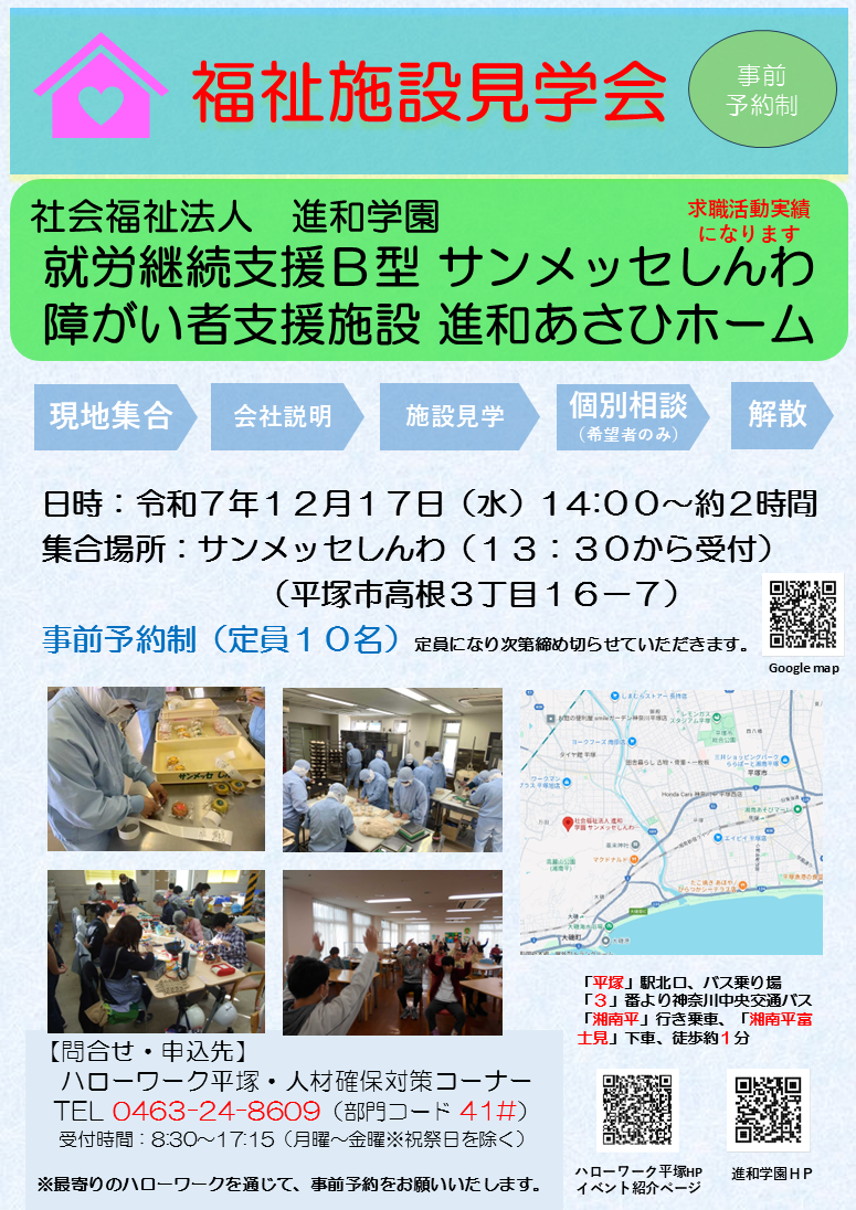 予約制です。定員10名。最寄りのハローワークにて電話か窓口にてお申し込みください。