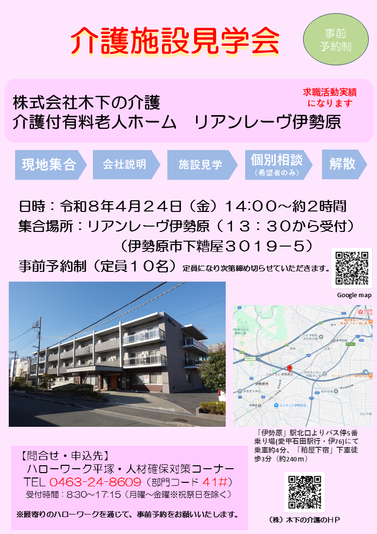 集合場所:介護付有料老人ホーム リアンレーヴ伊勢原(13:30から受付)伊勢原市下糟屋3019-5
