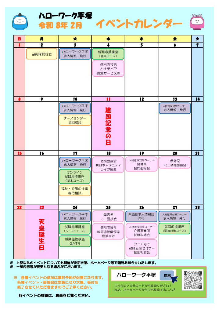 2. ハローワーク平塚 > 仕事をお探しの方へ > イベントカレンダー