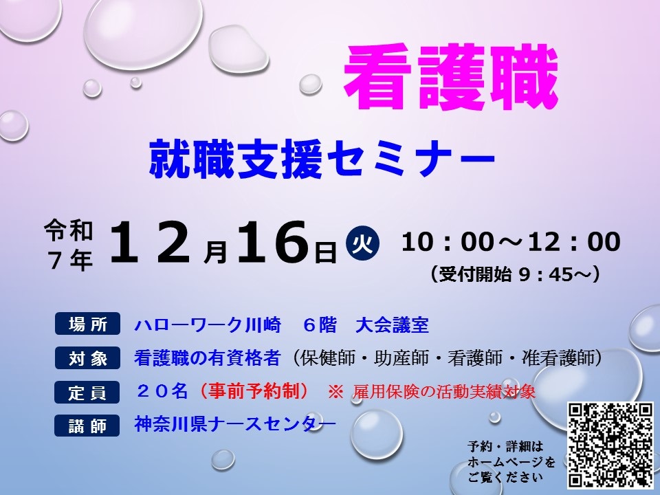 - 2025年11月20日 (NEW)看護職就職支援セミナーを12月26日(火)開催します!