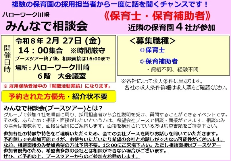- 2023年08月01日 平日夜間及び土曜日の就職相談を「ハローワークプラザよこはま」に集約します。ハローワーク川崎では実施しておりません。